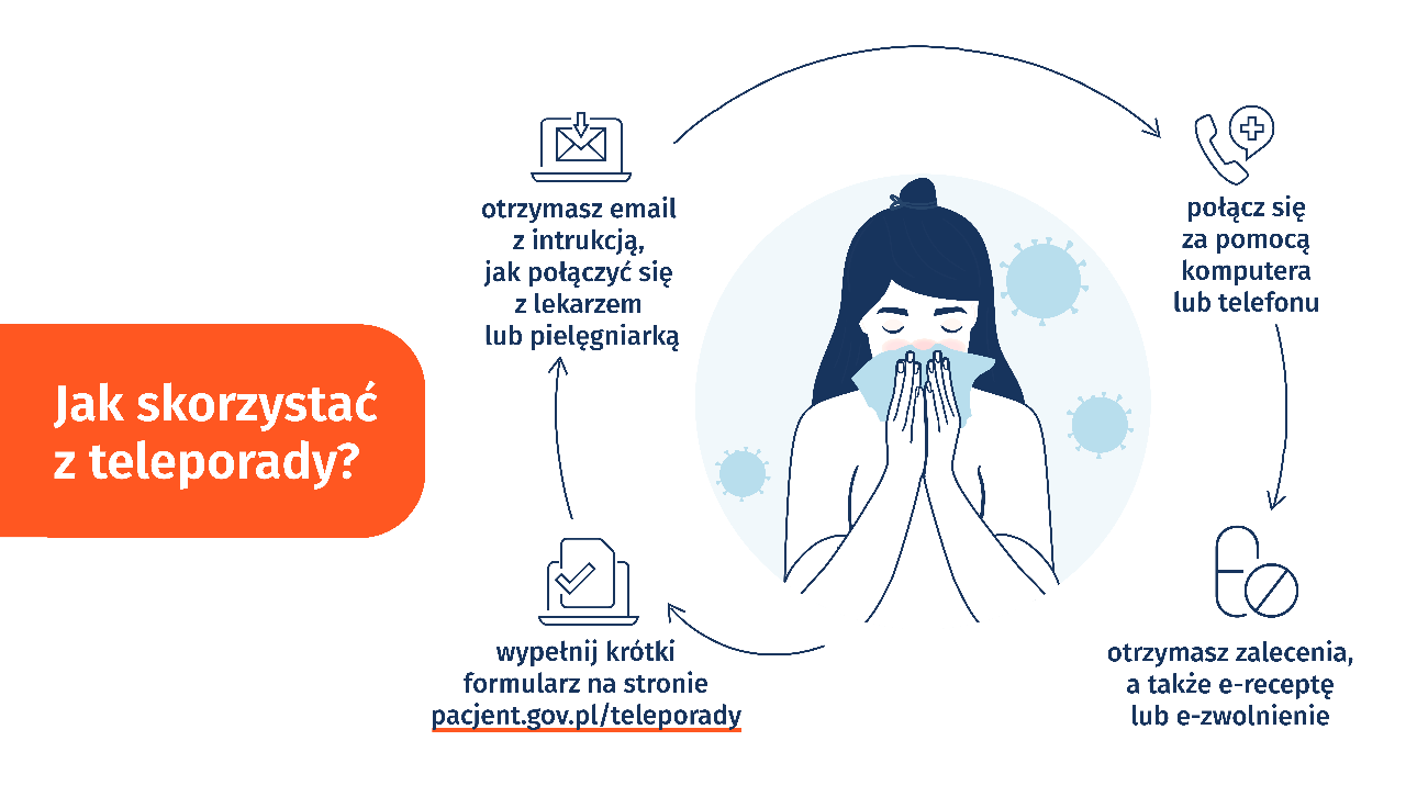 Jest weekend albo święto, a Ty masz gorączkę, duszności, kaszel lub inne objawy i obawiasz się, że zakaziłeś się koronawirusem? Nie musisz już czekać, aż Twoja przychodnia będzie otwarta. Skorzystaj z teleporady wideo lub telefonicznej i otrzymaj niezbędną pomoc medyczną.