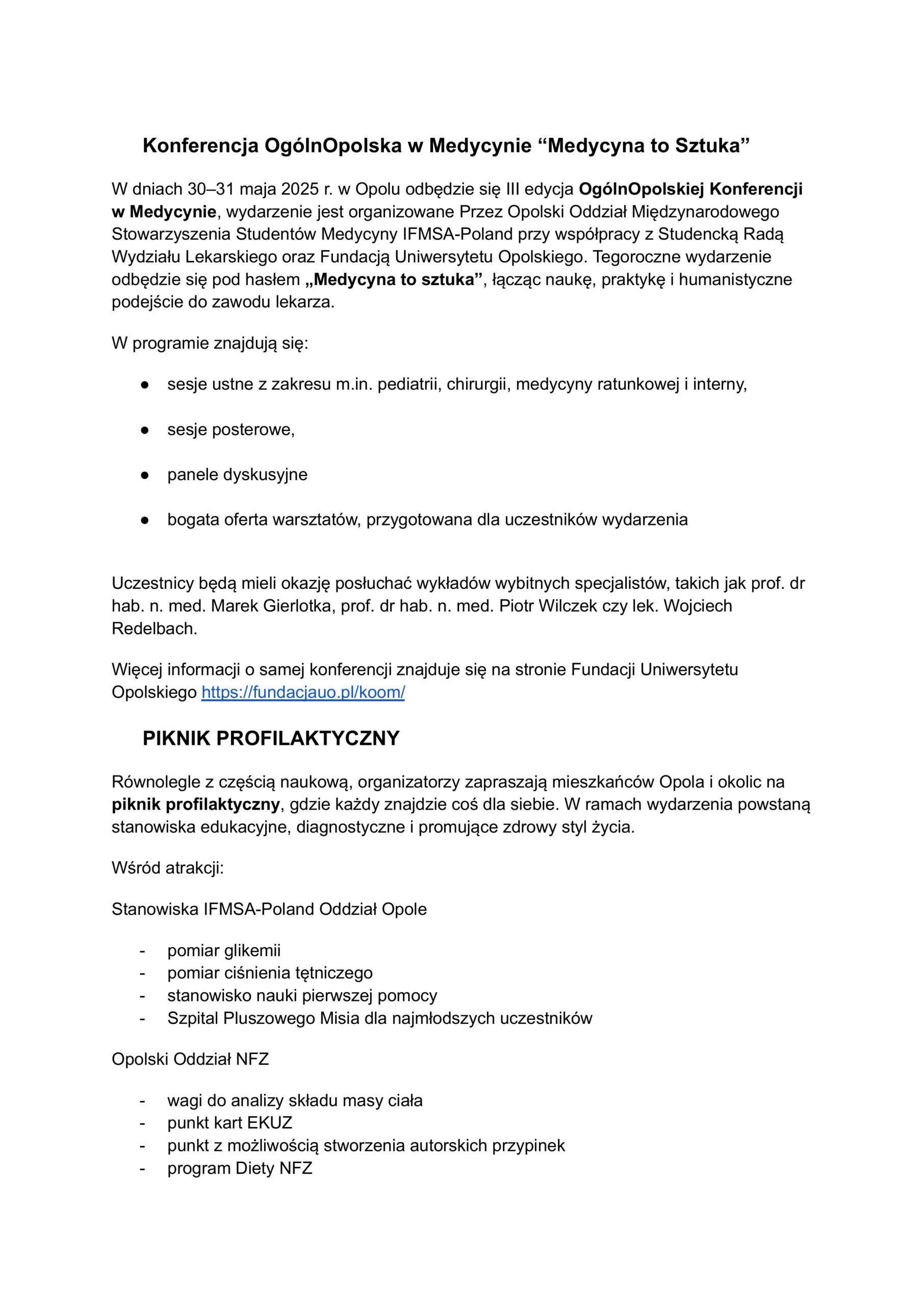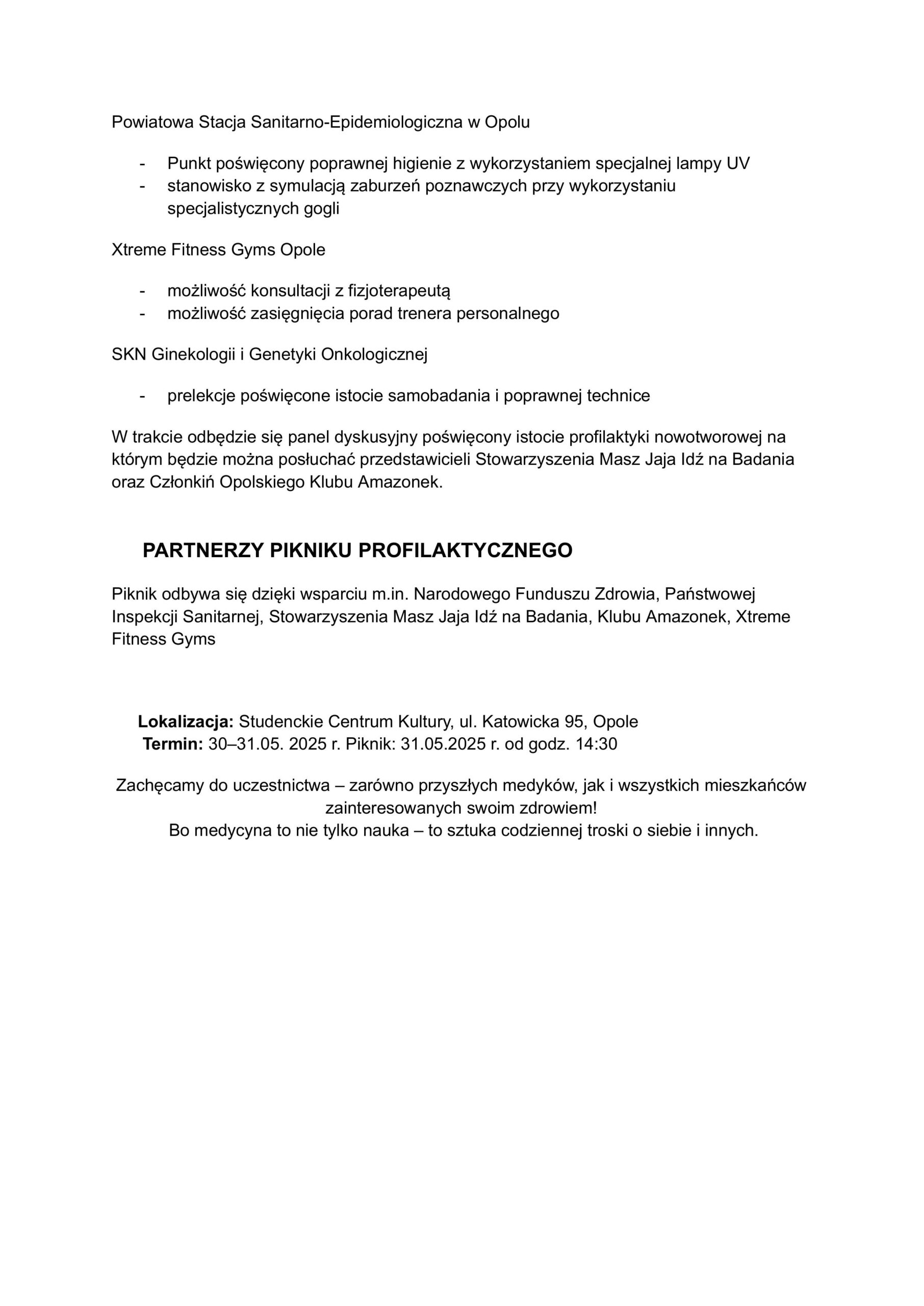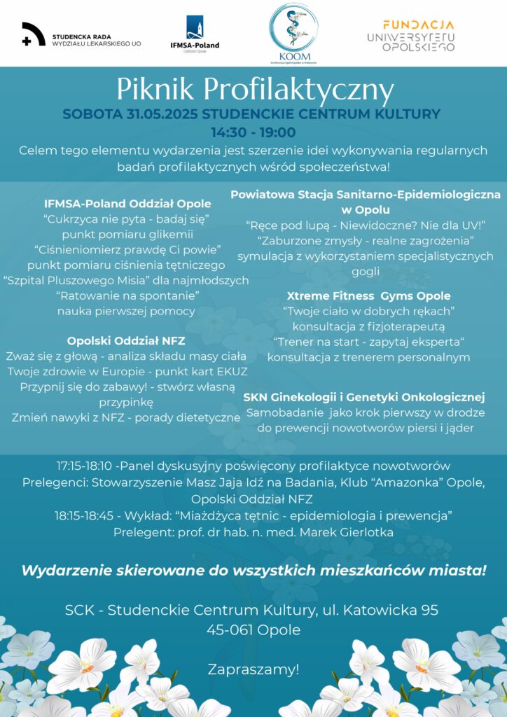Serdecznie zachęcamy do udziału w pikniku profilaktycznym w dniu 31.05.2025 r. na Kampusie Uniwersytetu Opolskiego przy ul. Oleskiej 70 w Opolu.
